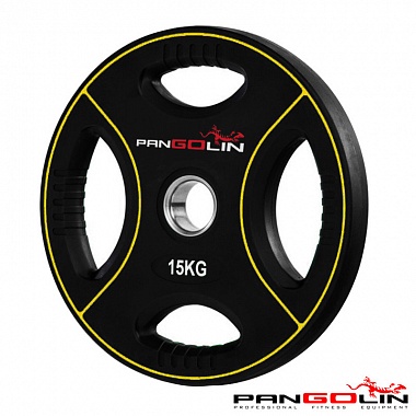 Диск олимпийский уретановый с 4-мя хватами d51мм Pangolin X-Line WP012PU 15кг черный с желтыми полос