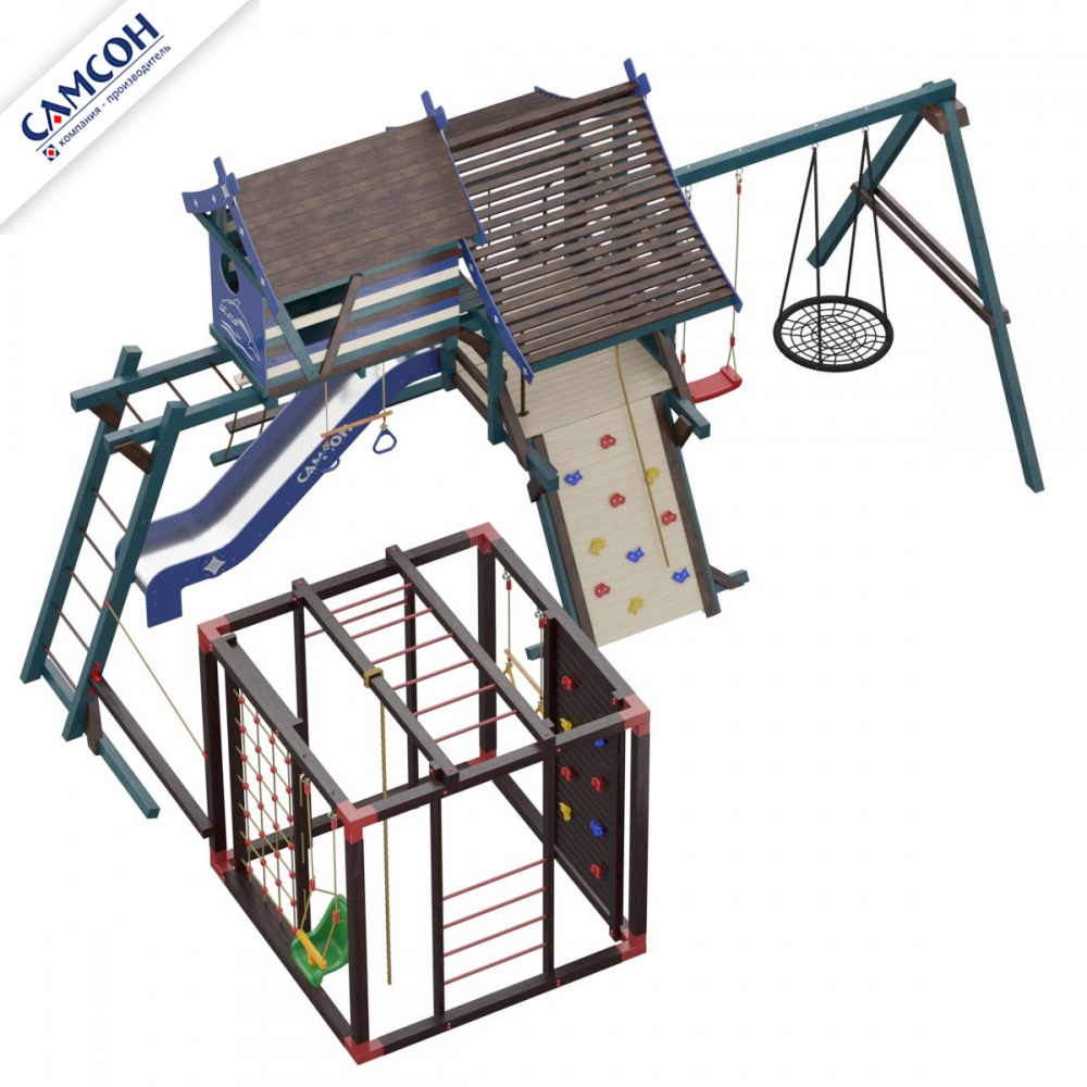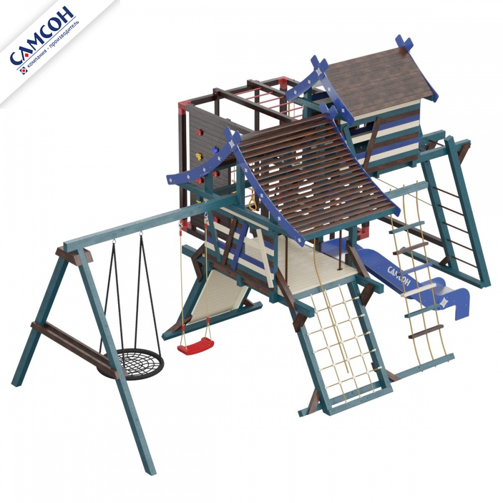 Товар поставляется в разобранном виде. В комплект для самостоятельной сборки входит подробная инструкция по сборке товара. Товар упакован в гофрокартонные короба. Установка детской игровой площадки проводится на ровной поверхности, свободной от насаждений. Рекомендуем зафиксировать конструкцию используя анкера любой формы.